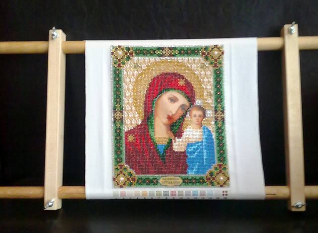 И не без гордост - въпреки бавните темпове, моята мънистена икона я свърших днес!arty: Аз бях една от първите, закупили такава икона от Оля, а чак сега показвам, но все пак - ГОТОВА Е!